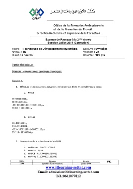 Filière : Techniques de Développement Multimédia Epreuve : Synthèse