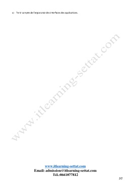 6) Tenir compte de l’ergonomie des interfaces des applications. www.itlearning-settat.com Email: admission@itlearning-settat.com Tél.:0661077812 2/2