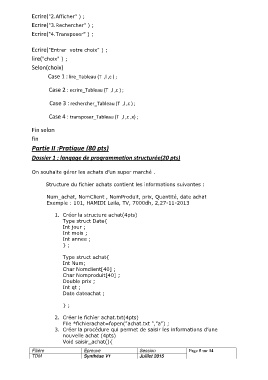 Case 2 : ecrire_Tableau (T ,l ,c ) ;