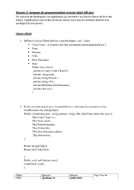 1. Définir la classe client dont les caractéristiques sont : (2pts)