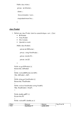 1. Définir une class Produit dont les caractéristiques sont : (2pts)