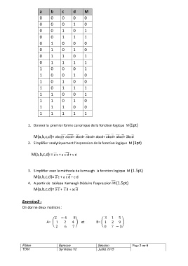 3. Simplifier avec la méthode de karnaugh la fonction logique M (1.5pt)