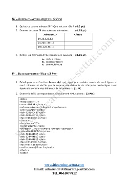 III – RESEAUX INFORMATIQUES : (2 PTS)