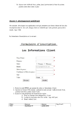 inscriptions dans le site web ,chaque client est identifié par nom, prénom, password et