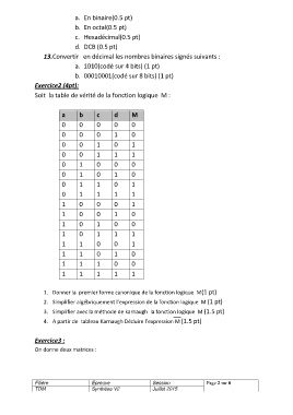 3. Simplifier avec la méthode de karnaugh la fonction logique M (1.5 pt)