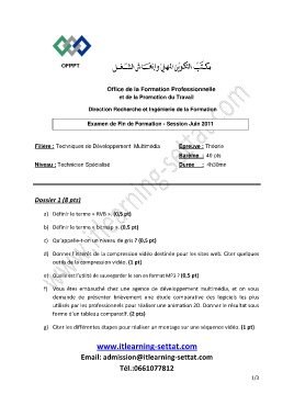 Filière : Techniques de Développement Multimédia Epreuve : Théorie