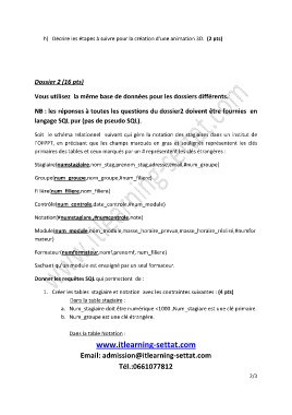 NB : les réponses à toutes les questions du dossier2 doivent être fournies en