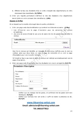 2. Créer une page web d’inscription pour les étudiants non encore enregistrés.(0,5 Pt)