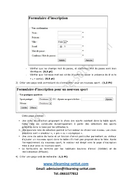 3) Créer une page web permettant de s’enregistrer pour un nouveau sport : (1,5 Pt)