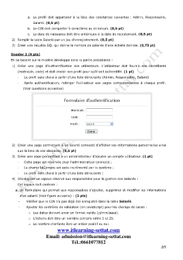(matricule, code) et doit choisir son profil pour qu’il soit authentifié. (1 pt)