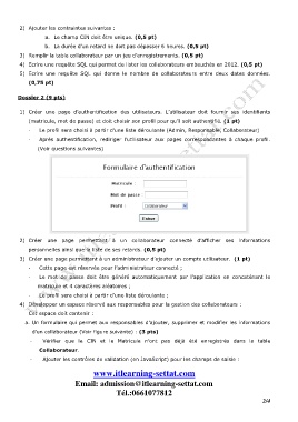 1) Créer une page d’authentification des utilisateurs. L’utilisateur doit fournir ses identifiants