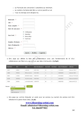 b. Une page qui affiche la liste des collaborateurs avec une fonctionnalité de tri d’un