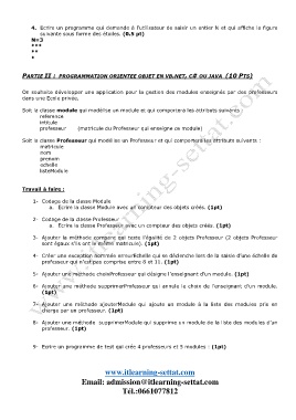9- Ecrire un programme de test qui crée 4 professeurs et 5 modules : (1pt)
