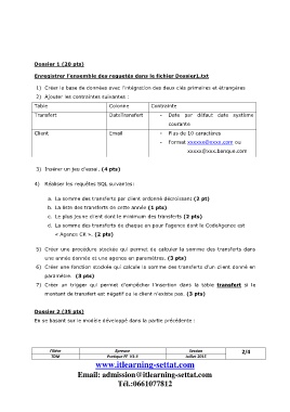 montant de transfert est négatif ou le client n’existe pas. (3 pts)
