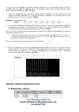 misé. Prévoir le contrôle de saisie. (2 Pts)