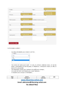 - Des zones de textes pour saisir : le nom, le prénom, l’adresse email, le mot de