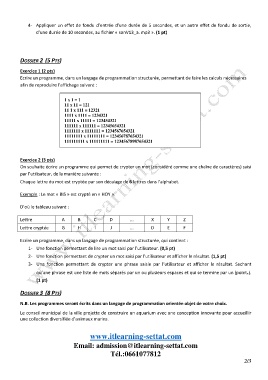 2- Une fonction permettant de crypter un mot saisi par l’utilisateur et afficher le résultat. (1,5 pt)