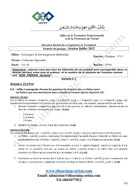 N.B. - Veillez à sauvegarder chacune des questions de ce dossier dans un fichier à part.