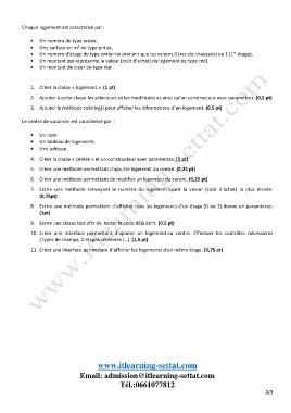 3. Ajouter la méthode toString() pour afficher les informations d’un logement. (0,5 pt)