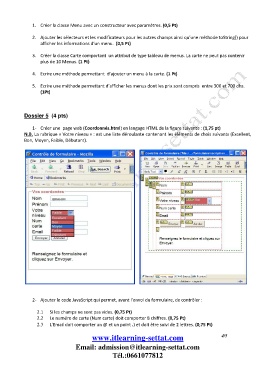 1. Créer la classe Menu avec un constructeur avec paramètres. (0,5 Pt)