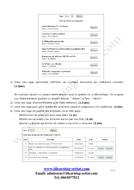 5) Créer une page permettant d’afficher les ouvrages empruntés par l’adhérent connecté.