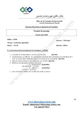 1. Convertir le nombre binaire (1010101)2 en octal. (0,5 Pt)