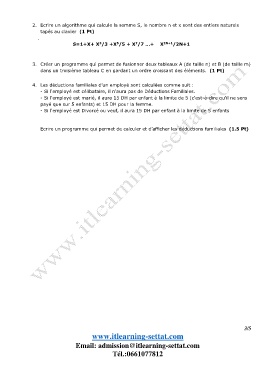 Ecrire un programme qui permet de calculer et d’afficher les déductions familiales (1.5 Pt)