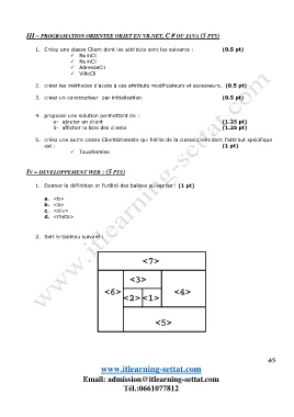 III – PROGRAMATION ORIENTEE OBJET EN VB.NET, C # OU JAVA (5 PTS)
