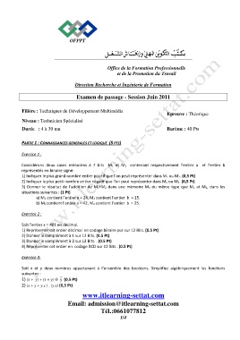 2) Indiquer le plus petit nombre entier négatif que l'on peut représenter dans M1 ou M2. (0,5 Pt)