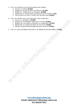 d. Rechercher un module selon sa référence ou son intitulé. (1pt)