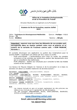 Filière : Techniques de Développement Multimédia Épreuve : Pratique – V 2-2