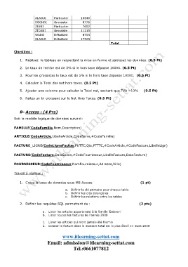 2. Le taux de remise est de 3% si le hors taxe dépasse 10000. (0.5 Pt)