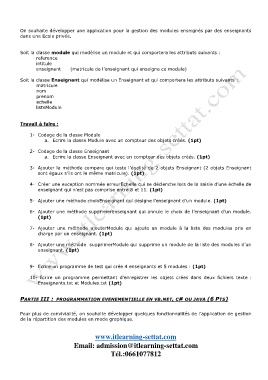9- Ecrire un programme de test qui crée 4 enseignants et 5 modules : (1pt)