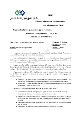 Filière :Techniques des Réseaux Informatiques Epreuve :Théorique