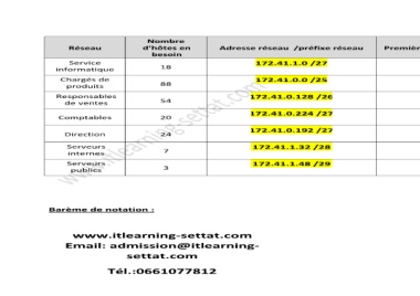 Réseau Service informatique Chargés de produits Responsables de ventes Comptables Direction Serveurs internes Serveurs publics Barème de notation :