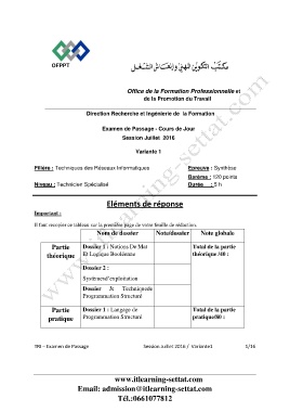 Filière : Techniques des Réseaux Informatiques Epreuve : Synthèse
