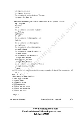 3. Modifier l’algorithme pour saisir les informations de N stagiaires. Variable