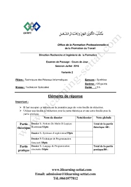 Filière : Techniques des Réseaux Informatiques Epreuve : Synthèse