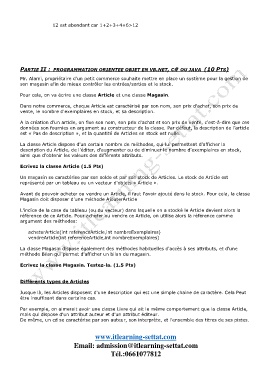 Ecrivez la classe Magasin. Testez-la. (1.5 Pts)