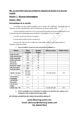 NB : un seul fichier texte qui contient les réponses du Dossier 2 ne sera pas