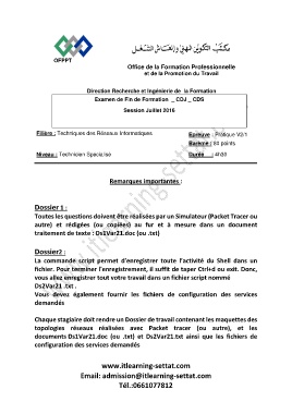 Filière : Techniques des Réseaux Informatiques Epreuve : Pratique V2/1