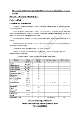 NB : un seul fichier texte qui contient les réponses du Dossier 2 ne sera pas