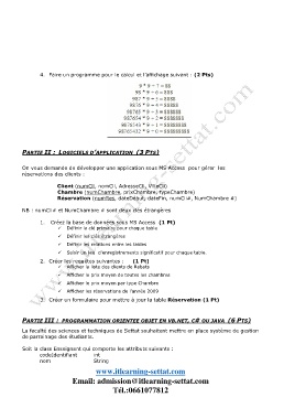 4. Faire un programme pour le calcul et l’affichage suivant : (2 Pts)