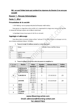 NB : un seul fichier texte qui contient les réponses du Dossier 2 ne sera pas