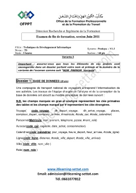 Examen de fin de formation, session Juin 2011
