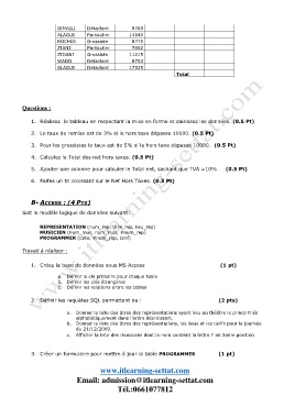 2. Le taux de remise est de 3% si le hors taxe dépasse 10000. (0.5 Pt)