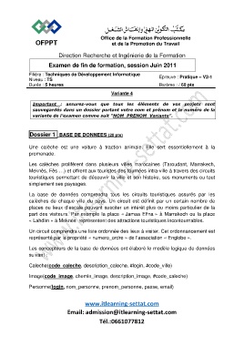 Examen de fin de formation, session Juin 2011