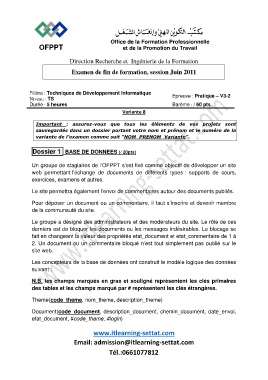 Examen de fin de formation, session Juin 2011