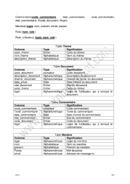 Table Commentaire