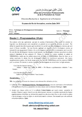 d’un développeur selon les règles de calcul mentionnées ci-dessus. On demande que cette méthode